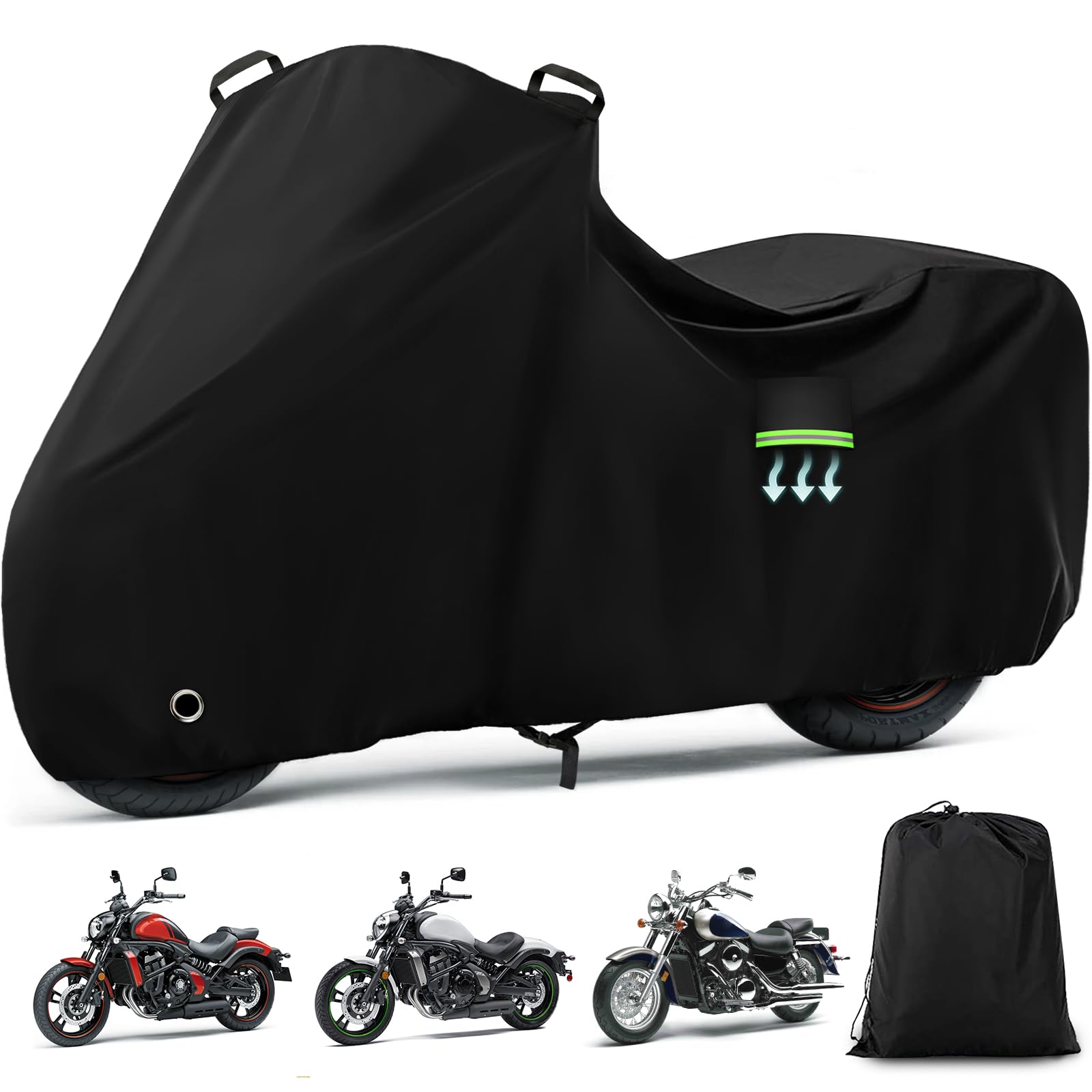 Kawasaki Vulcan S 650/900/1500 Waterproof Motorcycle Cover, Heavy Duty Outdoor All Weather UV Rain Dust Protection - Bla